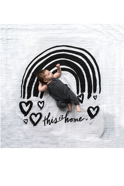 Memories that last a lifetime don't have to take a lot of time to set up. While this luxuriously soft muslin swaddle will quickly find its place as your baby's everyday favorite blankie, the stunning silkscreened graphic also makes it an uber-photogenic milestone blanket. From the day you bring baby home and as often as you wish thereafter, simply stretch the blanket out, lay baby down and snap away! Add our milestone numbers for an easy way to document baby's 1st year. When you look back, you'll have a priceless keepsake.