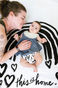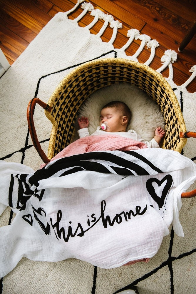 Crafted with care out of the highest quality GOTS certified organic cotton double gauze muslin. Our heirloom quality cotton swaddles get softer with every wash. When your babe is done with swaddling, hang the blanket on the wall as a nursery tapestry, lay it on the floor as a playmat or pack it away for future generations.