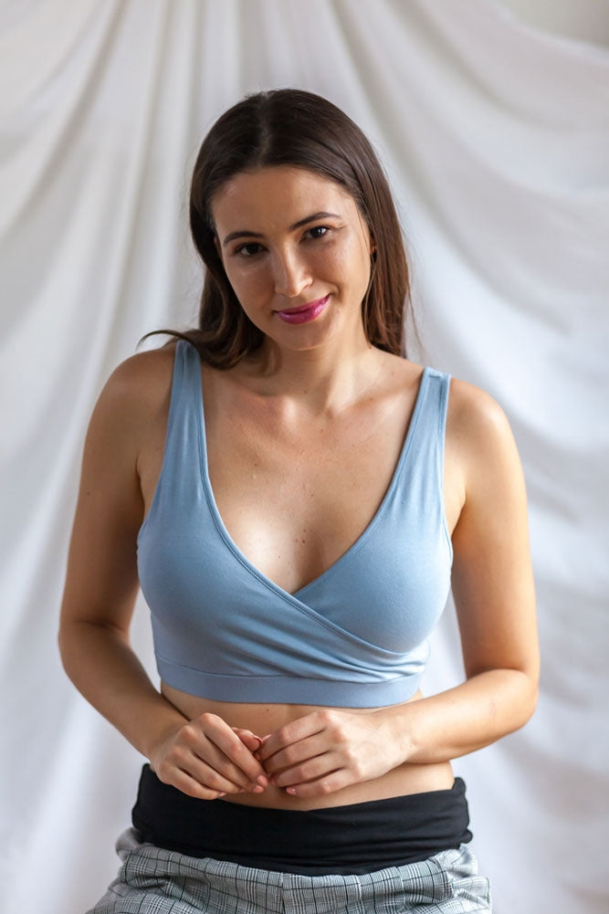 A great nursing sleep bra to wear when you don’t feel like wearing a bra to bed, but you need to because otherwise you will leak! No clasps to fumble in the dark either. Just pull down at the crossover neckline to nurse. Perfect for any sleepy and tired mom and anyone who just wants a seriously comfortable bra!