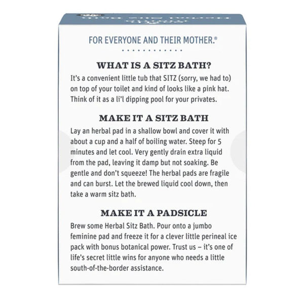 Here’s how to use a sitz bath, in case you need a quick tutorial. Herbal Sitz Bath sachets can be used as a soothing pad for your nethers after they’ve been brewed--warm or cool. Also, use the extra brewed solution to pour on a postpartum pad and freeze for extra relief. Follow with Organic Perineal Balm and Herbal Perineal Spray for the ultimate trifecta of soothing Take Care Down There® postpartum relief.
