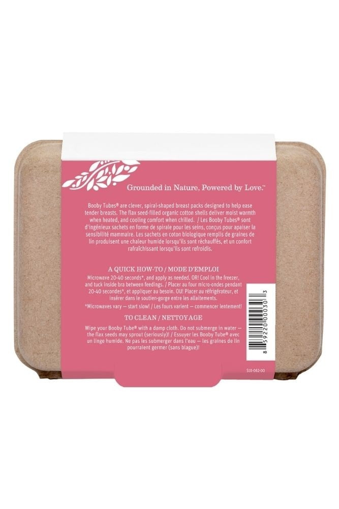 Booby Tubes® are clever little, gel-free breast packs made with an organic cotton shell and filled with fresh, pliable flax seed. Use warm or cold, depending on your nursing needs. When heated, Booby Tubes® deliver warm, moist heat to tender breasts; when stored in the freezer they offer cooling comfort.