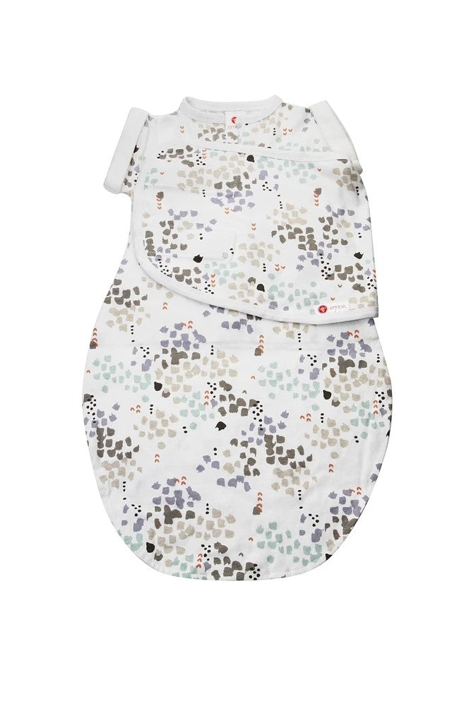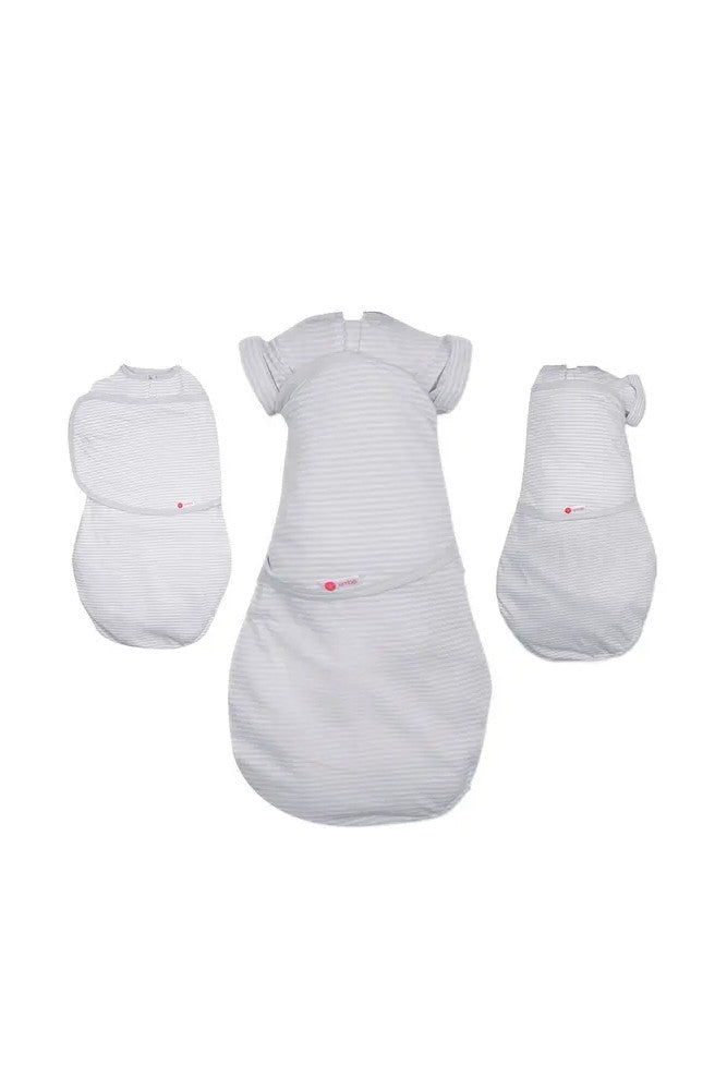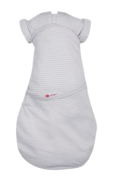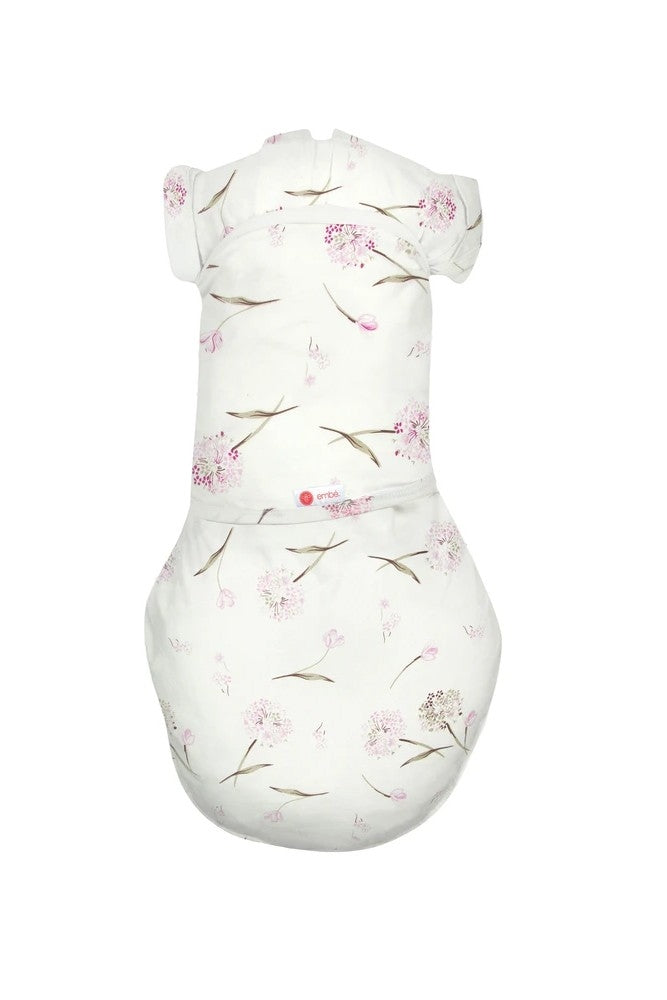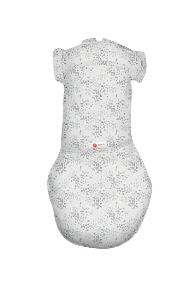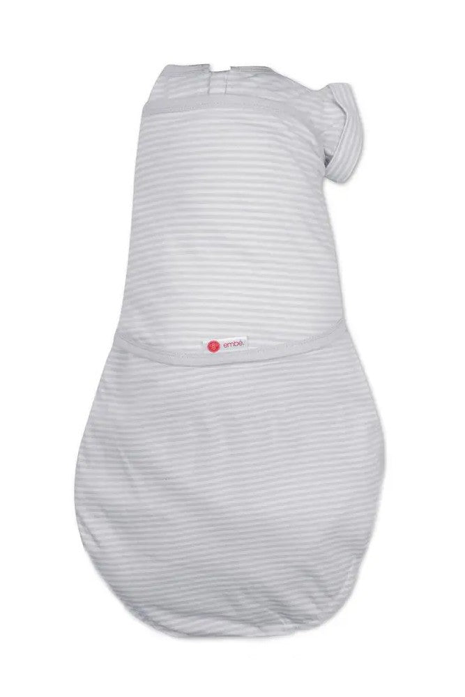 For babies who are starting wiggle their arms free or roll over, Embe's Transitional Swaddle offers all the options to keep baby comfortable while transitioning out of swaddling. Hidden snaps in the arm sleeves allow one or two arms in or out.