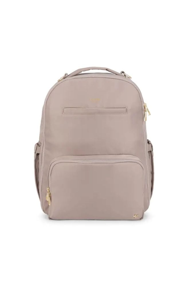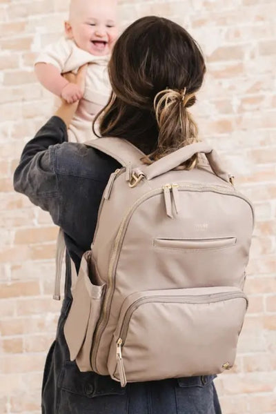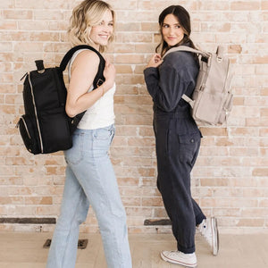 The Classic Backpack from JuJuBe has a sleek, innovative design that makes it easier than ever to stay organized on the go. This spacious, intuitively designed bag holds all your baby essentials—diapers, snacks, drinks, extra clothes, and more—plus personal items like your wallet, keys, and phone. Keep everything you need at your fingertips with an easy-access wipe pocket, insulated bottle pocket, and quick-reach cell phone pocket. The main compartment opens completely flat like a suitcase for easy packing, and the adjustable, contoured shoulder straps, trolley sleeve, and stroller straps add comfort and convenience.