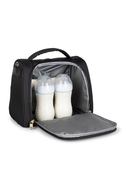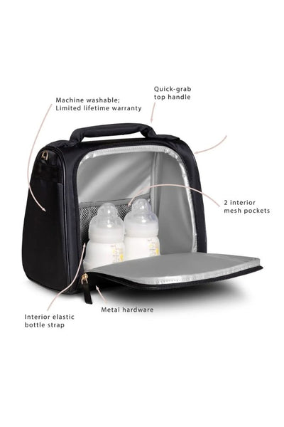 Keep your cool with the stylish Insulated Bottle Bag from JuJuBe. For easy use, this bag has an outside slip pocket, interior mesh pockets, and an elastic bottle strap, as well as a quick-grab top handle and an adjustable, detachable messenger strap. Doubling as a lunch bag, the bottle bag features food-safe, easy-to-clean PEVA lining, and accommodates up to three tall bottles with additional space for food to keep your little one’s favorite snacks and drinks cool while you’re out and about. Parent life is full of food messes, and the Insulated Bottle Bag is easy to clean.