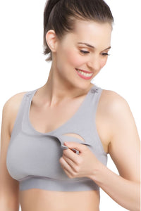 A reliable, budget-friendly sports nursing bra for medium impact exercise. La Leche League's Sports Nursing Bra is great for moms who run. Designed to give you a high level of support during your workouts. Unclip and drop open cups for easy nursing and pumping access.