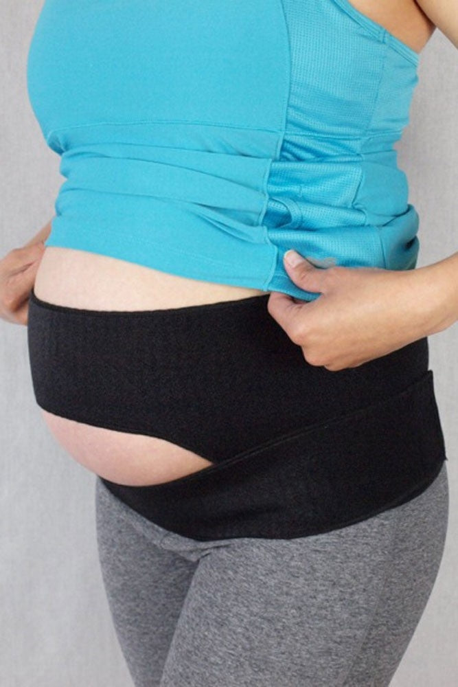 This is the most flexible maternity support band we've ever put on! It's made of neoprene (scuba material) with non-slip silicone to keep it in place. Ideal for exercise during pregnancy as well as an everyday maternity support band, it provides the right amount of support while still allowing your core muscles to do the work.