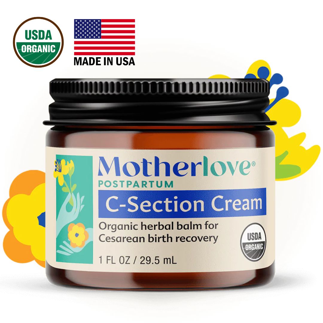 Motherlove's Organic C-Section Cream is a postpartum essential after Cesarean birth. This organic scar cream helps soothe discomfort and promote recovery.
