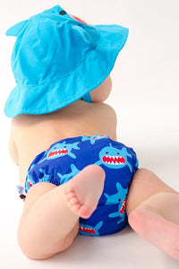 Your little one will look oh-so-cute taking a dip in the ocean or the pool, and your baby's swim will also be pool-friendly! ZOOCCHINI's worry-free Reusable, Waterproof Swim Diaper & Sunhat Sets for your baby have UPF sun protection and are easily washable for simple care and maintenance.